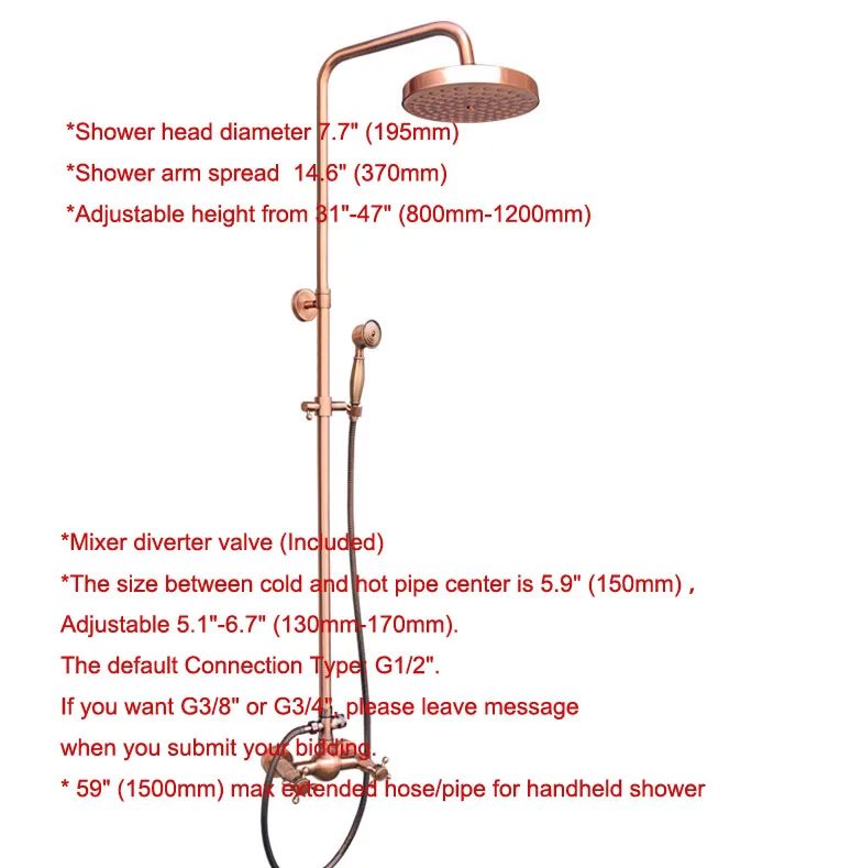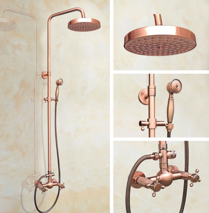 BEST Antique Red Copper Wall Mount Shower Set Faucet Dual Handle with Handshower + Bathroom Shower Mixer