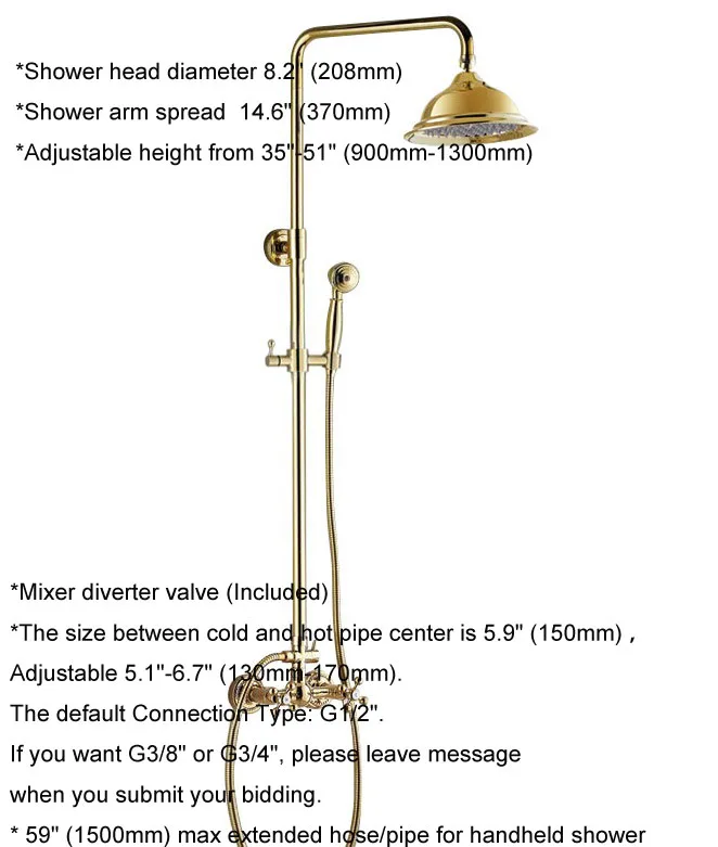 Luxury Polished Gold Color Brass Dual Cross Handles Bathroom 8" Inch Round Rainfall Shower Faucet S