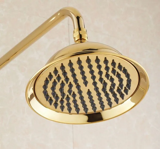 Best Luxury Polished Gold Color Brass Dual Cross Handles Bathroom 8" Inch Round Rainfall Shower Faucet S