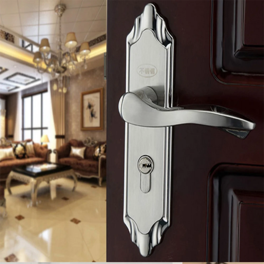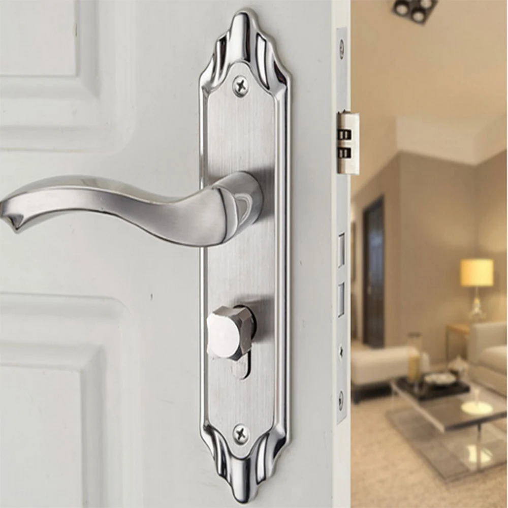 Stainless steel bedroom door lock indoor room solid wood door lock Modern handle lock toilet bathro