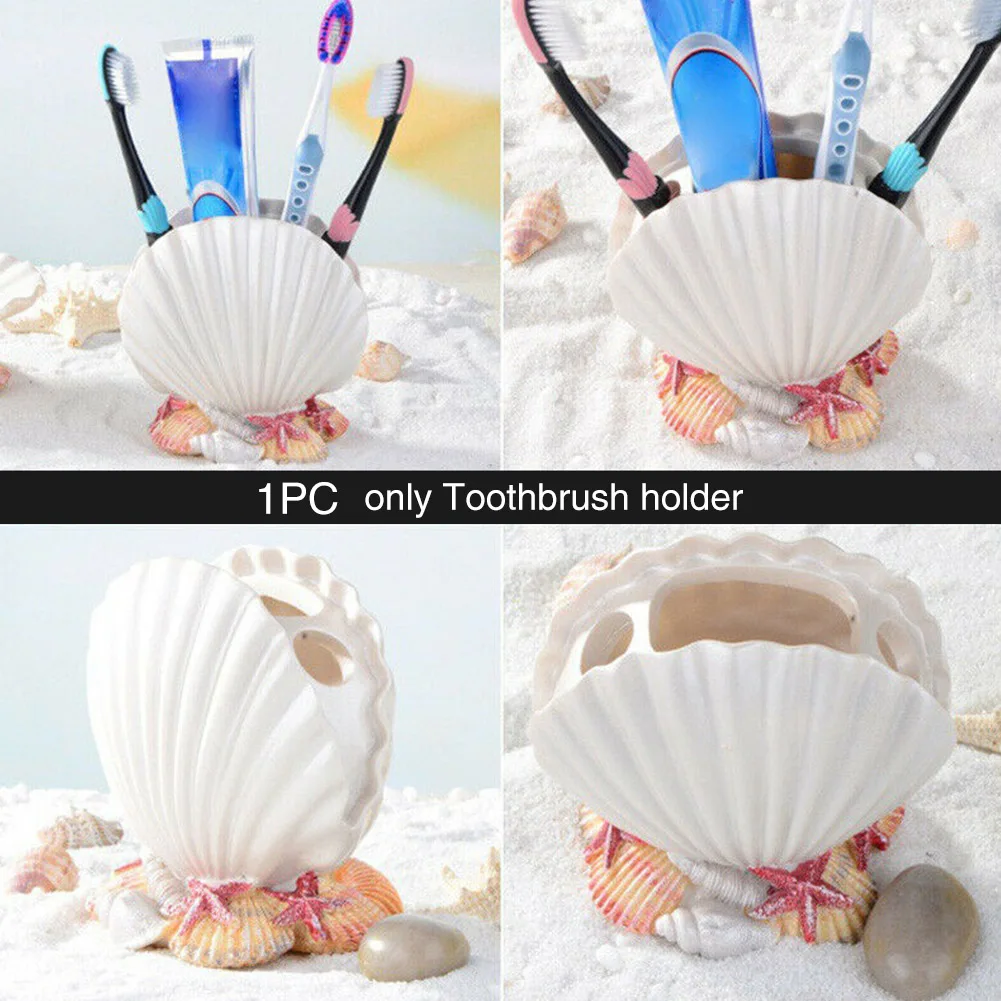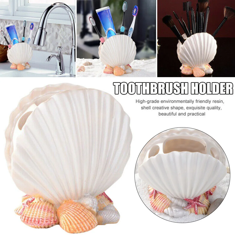 BEST Hot New Resin Toothbrush Holder Bathroom Shell Shaped Storage Bedroom Accessories Craft Home Decora